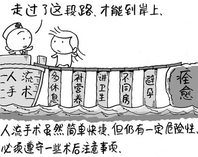 1、人流术后禁止同房:人流术后要禁止同房,以免刺激生殖器造成感染。